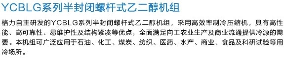 YCBLG系列半封閉螺桿式乙二醇機組 2019-11-12 本文被閱讀 1925次