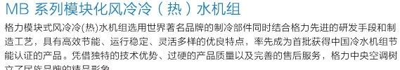 MB系列模塊化風(fēng)冷冷(熱)水機(jī)組 2019-11-12 本文被閱讀 2036次